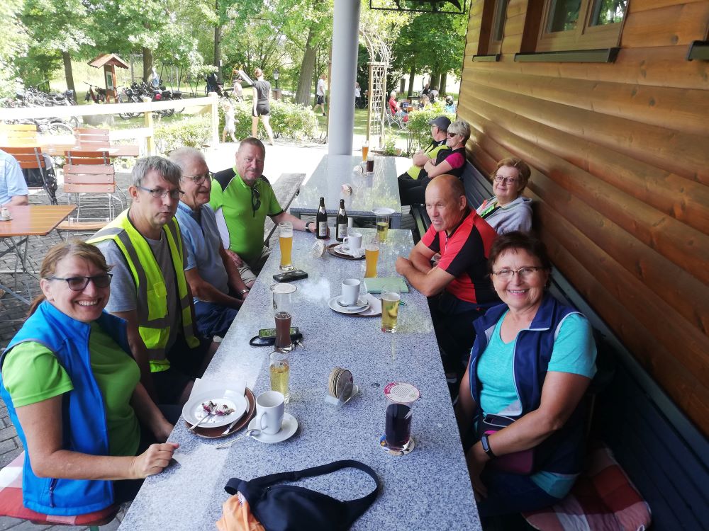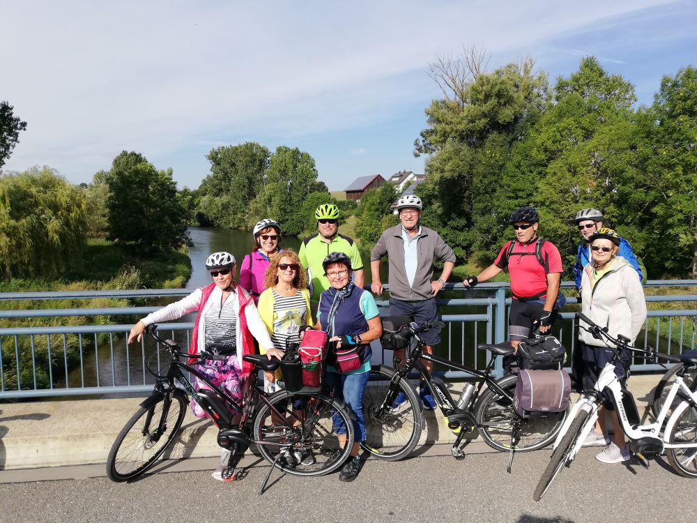 Zu einer Radtour startete die Ortsgruppe Allmendingen vom Schwäbischen Albverein am Sonntag, 7. August bei schönem Sommerwetter. Es ging nach Ehingen und an der Donau entlang nach Rottenacker. Dann gings am Stehbach entlang nach Bettighofen. Weiter durch das schöne Tobeltal bis Dietelhofen. In Reutlingendorf auf dem neuen Dorfplatz legten die Radler eine Vesperpause ein. Nächstes Ziel war Munderkingen zur Frauenbergkirche mit kleiner Besichtigung. Danach Einkehr in der Fischerhütte bei Rottenacker. Nach 65 km erreichte die Gruppe Allmendingen und alle waren zufrieden mit dieser schönen Tour.