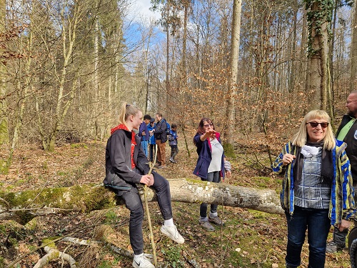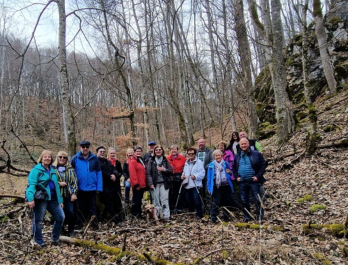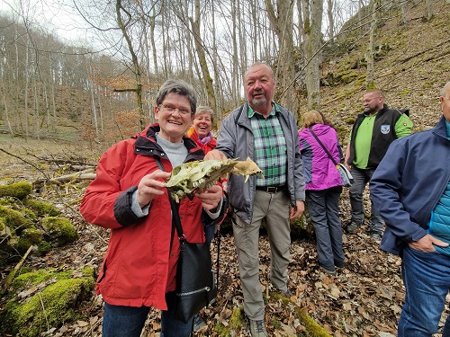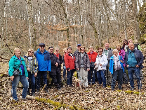 Frühlingsluft und Sonnenschein: Der Schwäbische Albverein der Ortsgruppe Allmendingen mit Wanderführerin Renate Schuba machte am Sonntag, 19. März eine Nachmittagstour ins wildromantische Maientäle bei Allmendingen. Mit 21 Personen, darunter 6 Gästen und 3 Jugendlichen, ging es in das naturbelassene Tälchen mit seinen steilen Hängen und dazwischen kleinen Felsen. Es blühten noch viele Märzenbecher und man kletterte auch manchmal über umgestürzte Bäume, selbst Schädelknochen von Tieren wurde gefunden. Allen hat diese Tour viel Spaß gemacht.