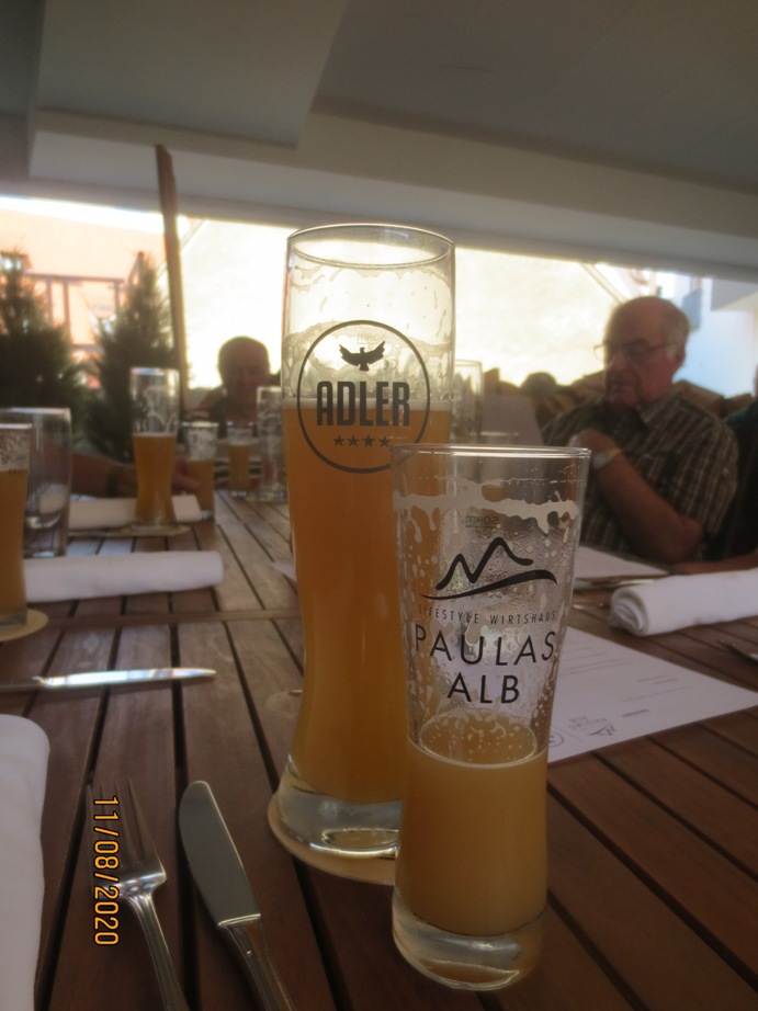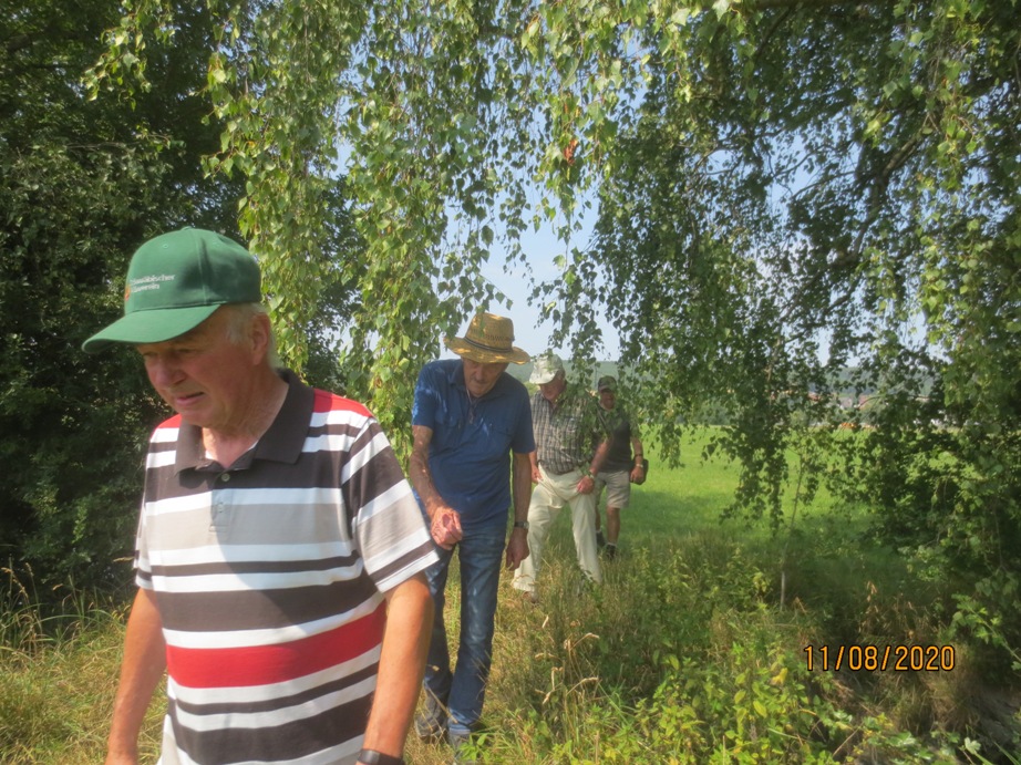 Gut ins Schwitzen kamen die Wanderer die von Allmendingen übers Ried und Berkach gingen. Einkehr in Paulas Alb mit schattigen Plätzen und kühlem selbstgebrauten Bier. Eine kleine Brauereiführung in der ehemaligen Kegelbahn mit Bierverkostung folgte.