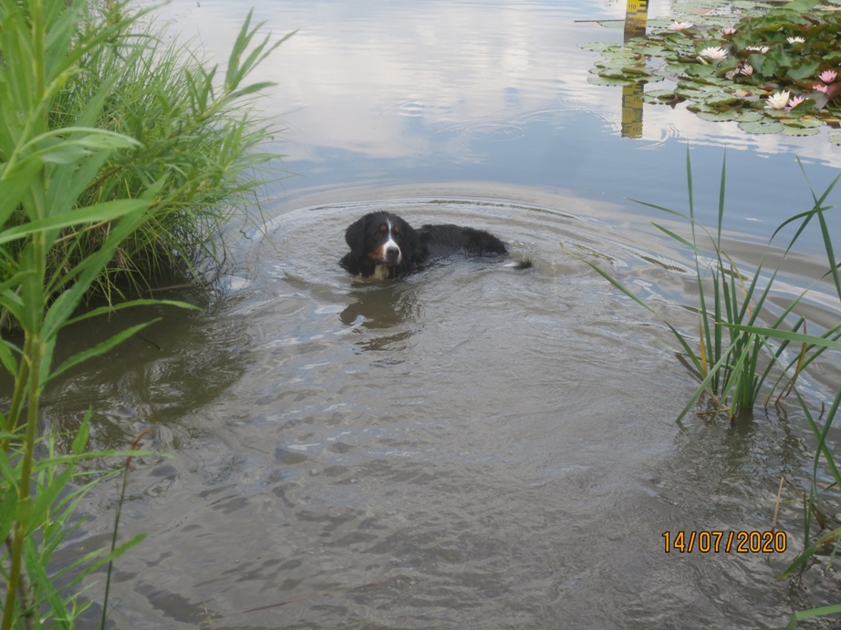 Weiter ging es an den Schmiechener See. Im Seerosentümpel durfte der Hund von Dieter ein Bad nehmen.