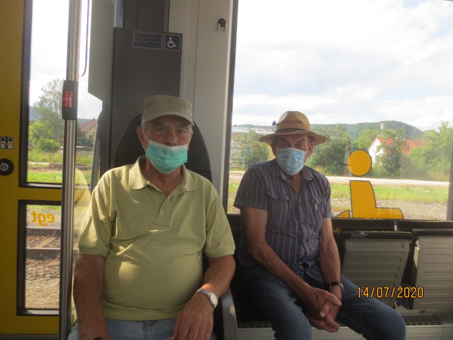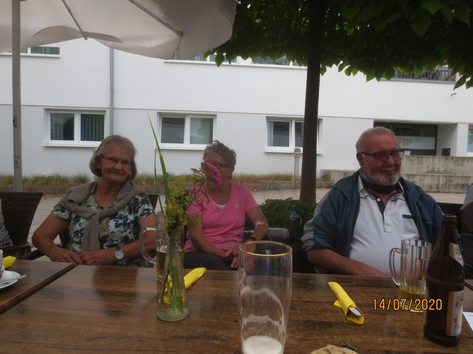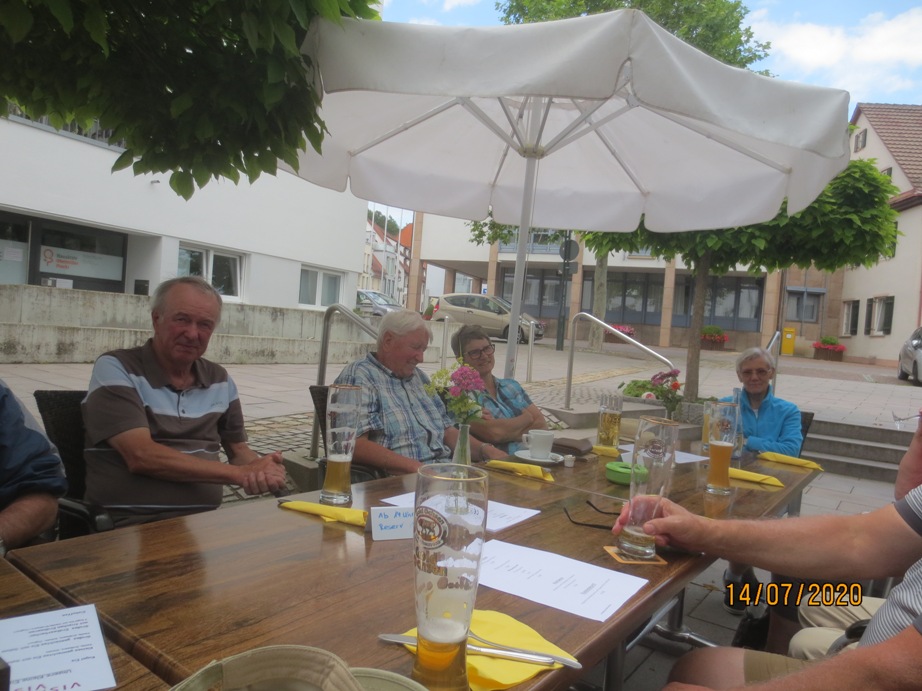 Die zweite Gruppe ging von Schmiechen aus Richtung Urspring und weiter nach Schelklingen. Hier durften die Senioren im Freien unter Sonnenschirmen bei bestem Wetter sitzen das gerne bei kühlen Getränken