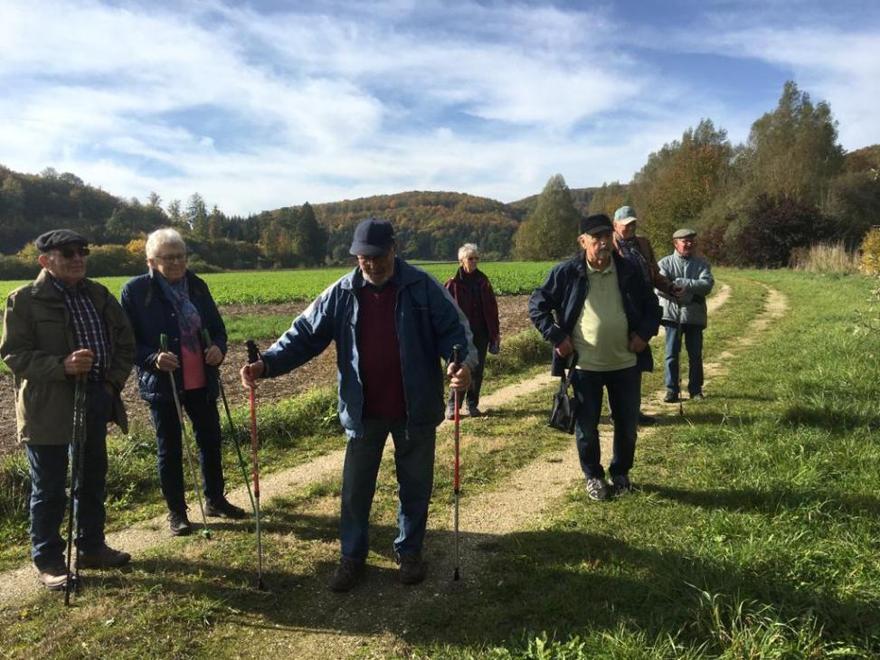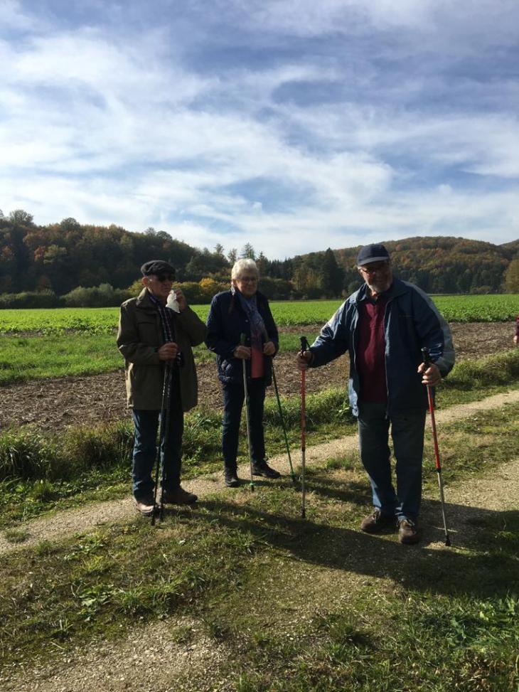 Wanderung in Allmendingen mit 6 Frauen und 10 Männern entlang der Wassergasse im Ried. Die Erdbewegungen und die neue Brücke wurde in Augenschein genommen aber vieles ist noch unerklärbar warum, wieso und weshalb.
