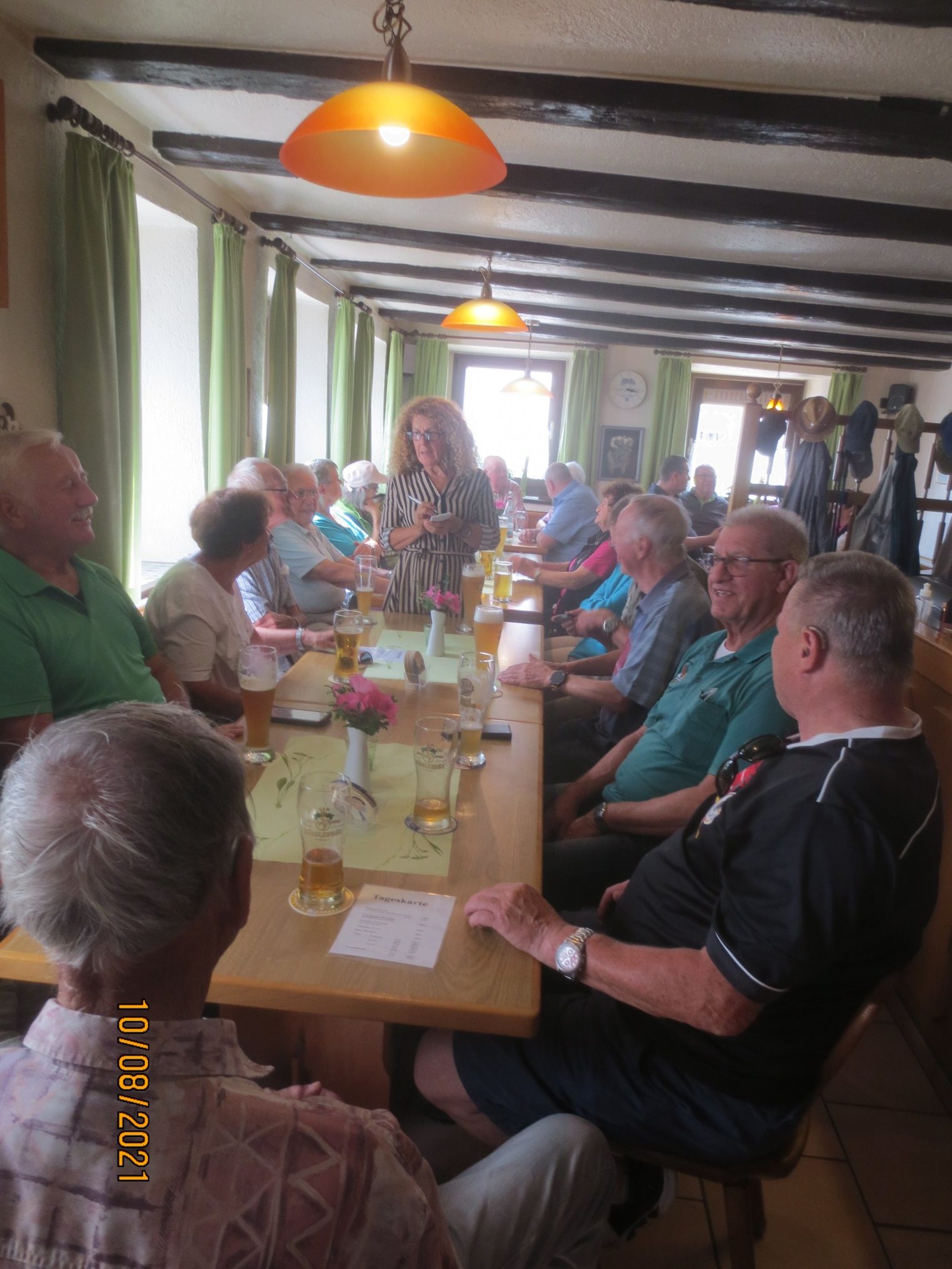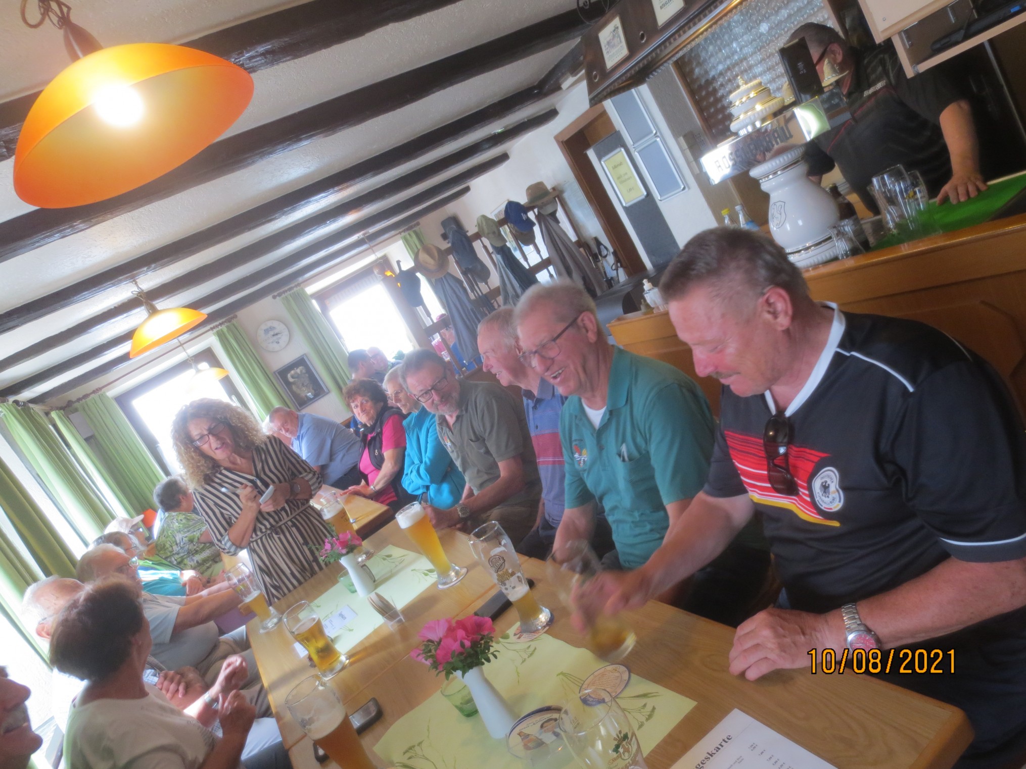 Wanderung nach Schelklingen zur Einkehr bei Helmut Hindings Gasthaus zur Traube. Die Wirtschaft wurde fast vollständig gefüllt mit 10 Frauen und 17 Männern.