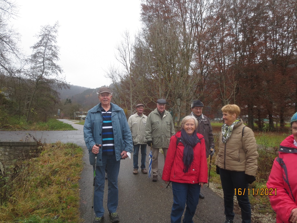 Wanderung um Blaubeuren bzw. an der Blau entlang mit Einkehr im Naturfreundehaus. 7 Frauen und 13 Männer wanderten bei trockenem aber trübem Wetter an der Blau entlang. Einige machten einen Abstecher zum Rusenschloß mit herrlichem Ausblick. Das nasse Laub auf steinigem Untergrund mit vielen Wurzeln lies die Gruppe achtsam und vorsichtig wandern. Einkehr bei Wiener- und Weißwürsten war hervorragend.