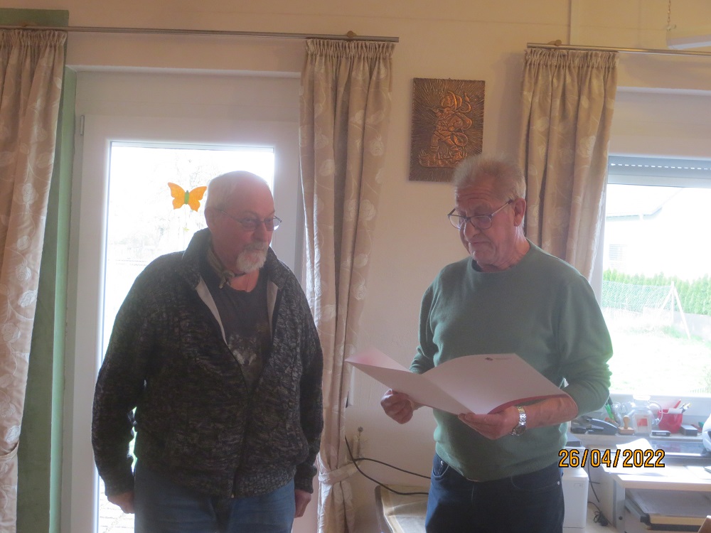Auch wurde von Vorstand Karl-Heinz Juchems noch Heinz Templin für seine Dienste als Fähnrich und Wanderführer geehrt.