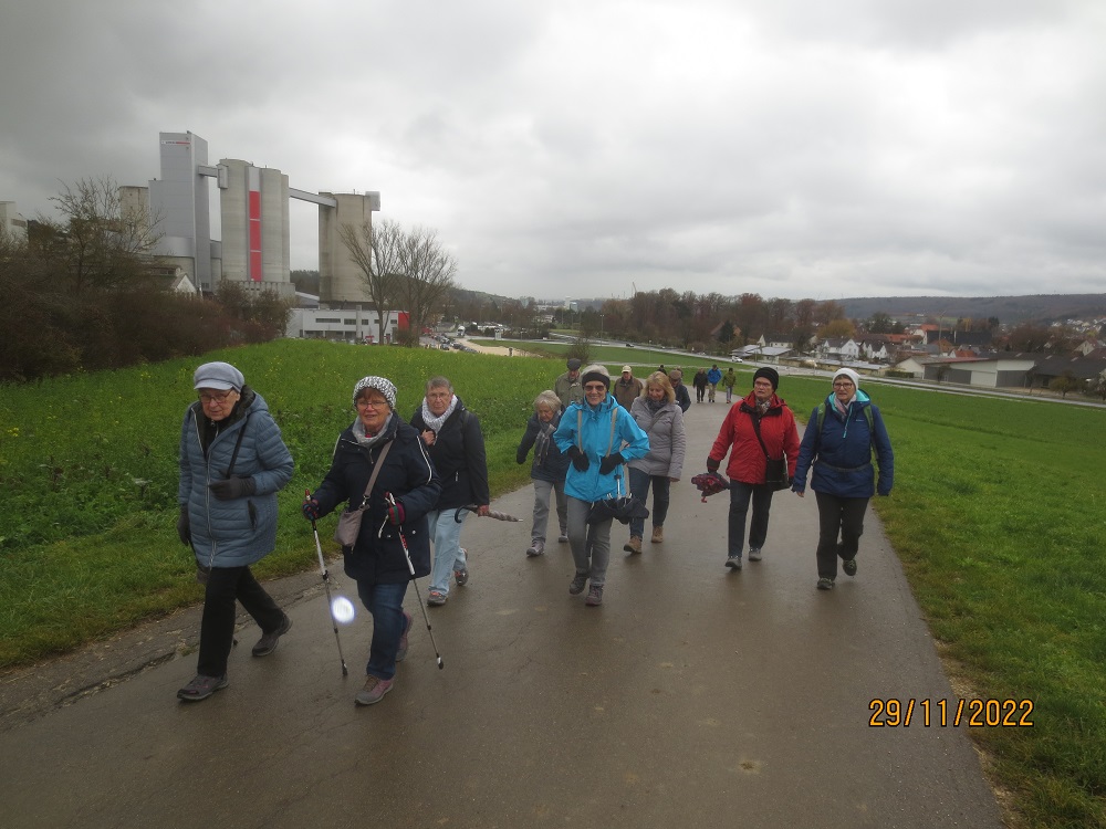 Wanderung um den Steinbruch der Fa. Schwenk mit 7 Wanderern bzw. an den Schmiechener See mit Einkehr bei Noch-Kantine-Wirt Jürgen. Feiner Nieselregen begleitete die insgesamt 28 Wanderer, davon 11 Frauen, doch zuhause hocken ist auch keine Option!!!!!