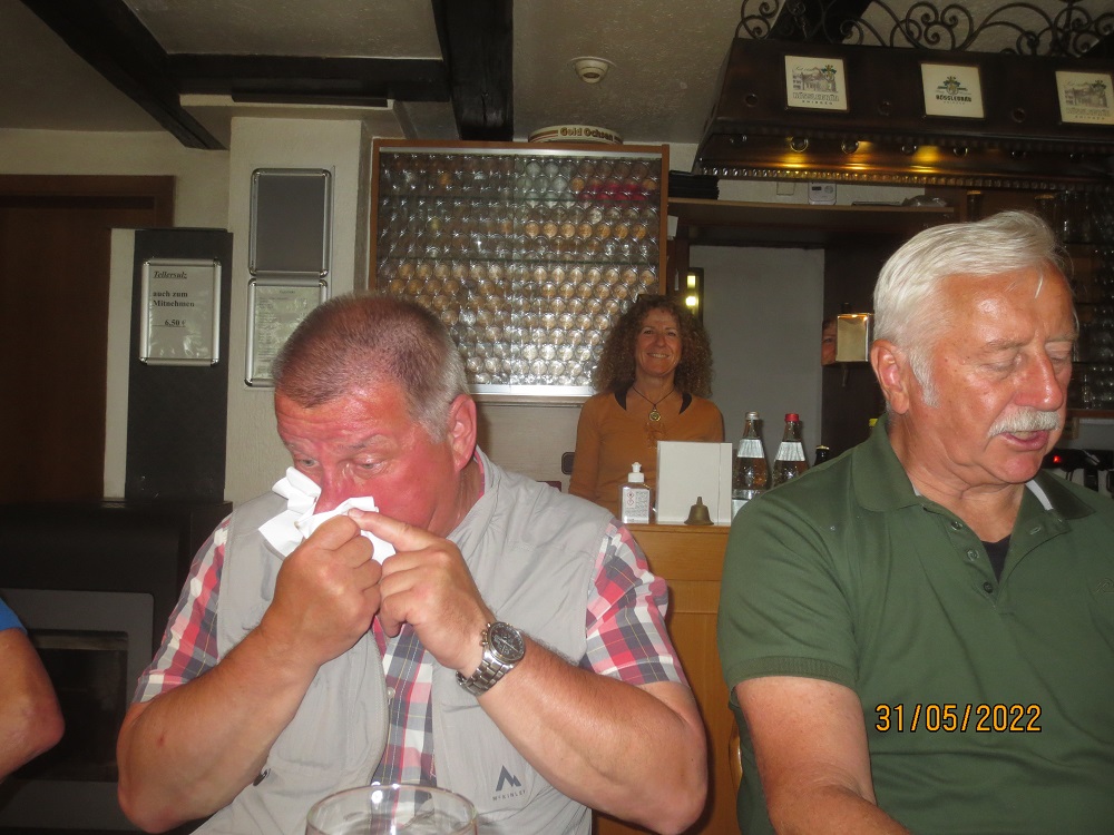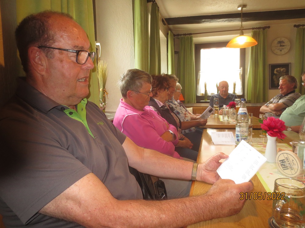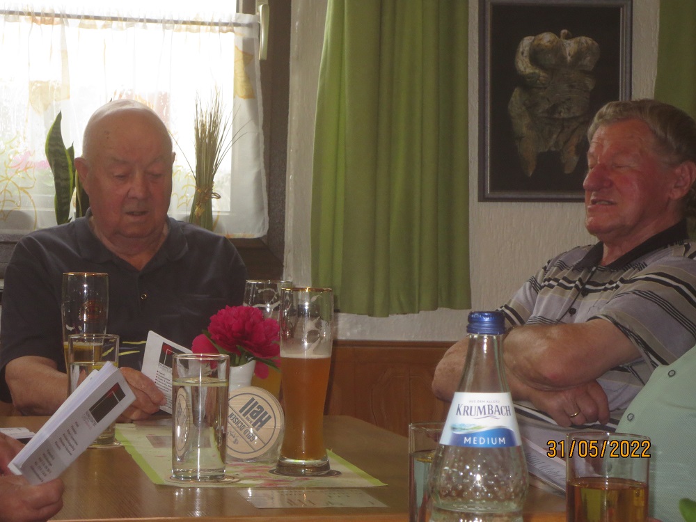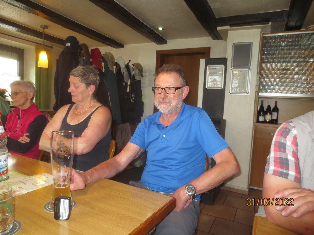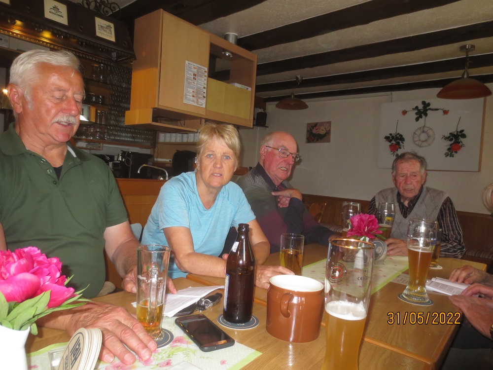 Wanderung mit 9 Frauen und 13 Männer nach Schelklingen zur Einkehr bei Helmut Hinding im Gasthaus Traube. Super Wanderwetter, fast schon zu warm war die Wanderstrecke nach Schelklingen. Von Allmendingen wanderten 9 Personen und das in 3 Gruppen, dafür ohne Pause in genau 5/4 Stunde. Insgesamt waren es 5 Gruppen, je nach Kraft die länge der Wanderstrecke. Vesper und Einkehr mit super Gesang war bei Helmut spitze.