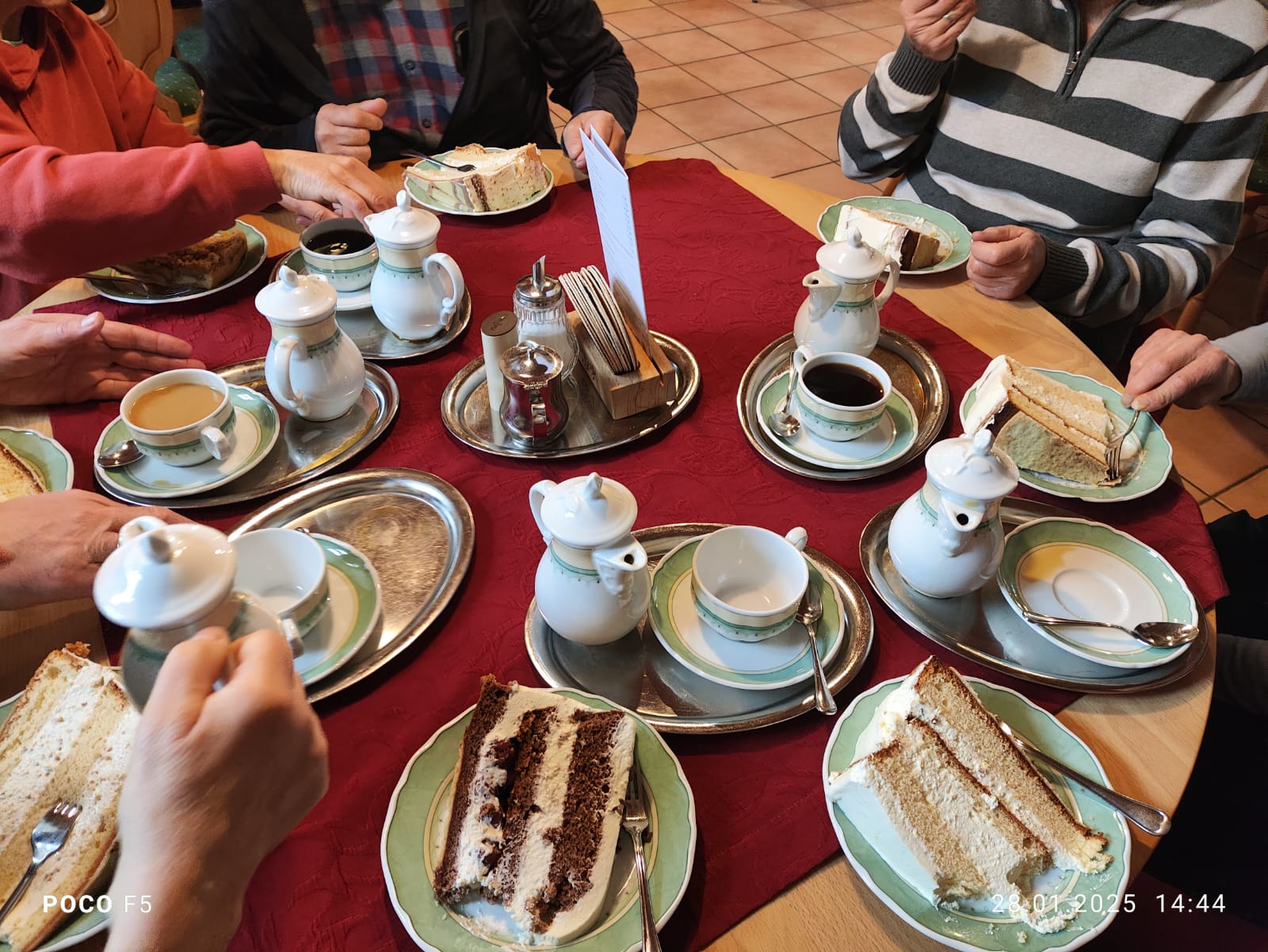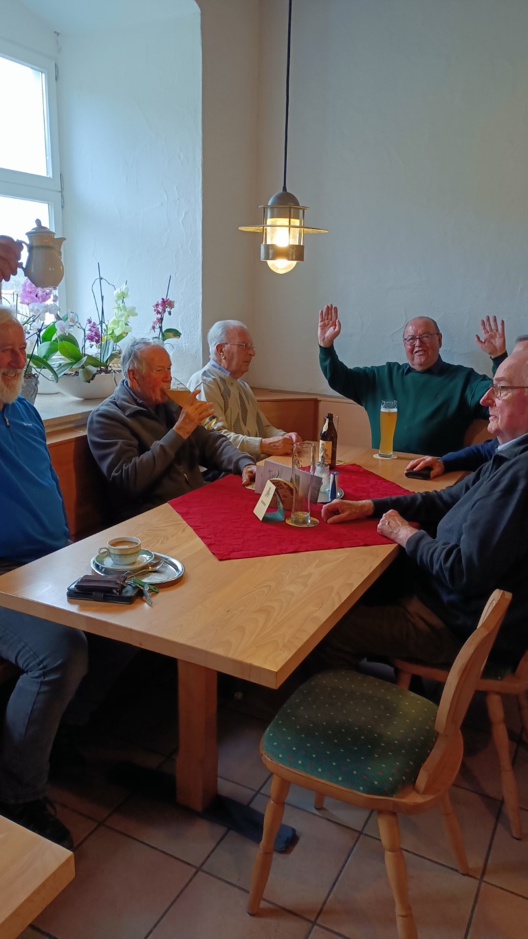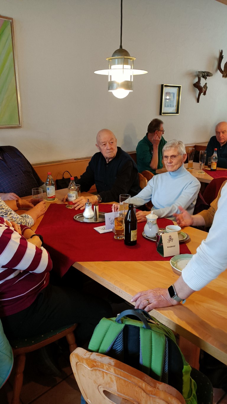 Wanderung Dienstag den 28 01 von Munderkingen nach und um Schloss Mochental, zur Einkehr ins Schloss Stüble mit 6 Frauen und 11 Männern. 3 wanderten von Munderkingen, über den Frauenberg. Der Rest erkundete Mochental. Leider war der Busfahrer nicht auf zack, überfuhr die Haltestelle und fuhr bis nach Lauterach. Dafür war das Vesper im Schloss-Stüble wie immer sehr gut. Am Abend bekamen wir in aller letzter Sekunde noch den Zug. Es war ein aufregender und schöner Tag.