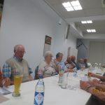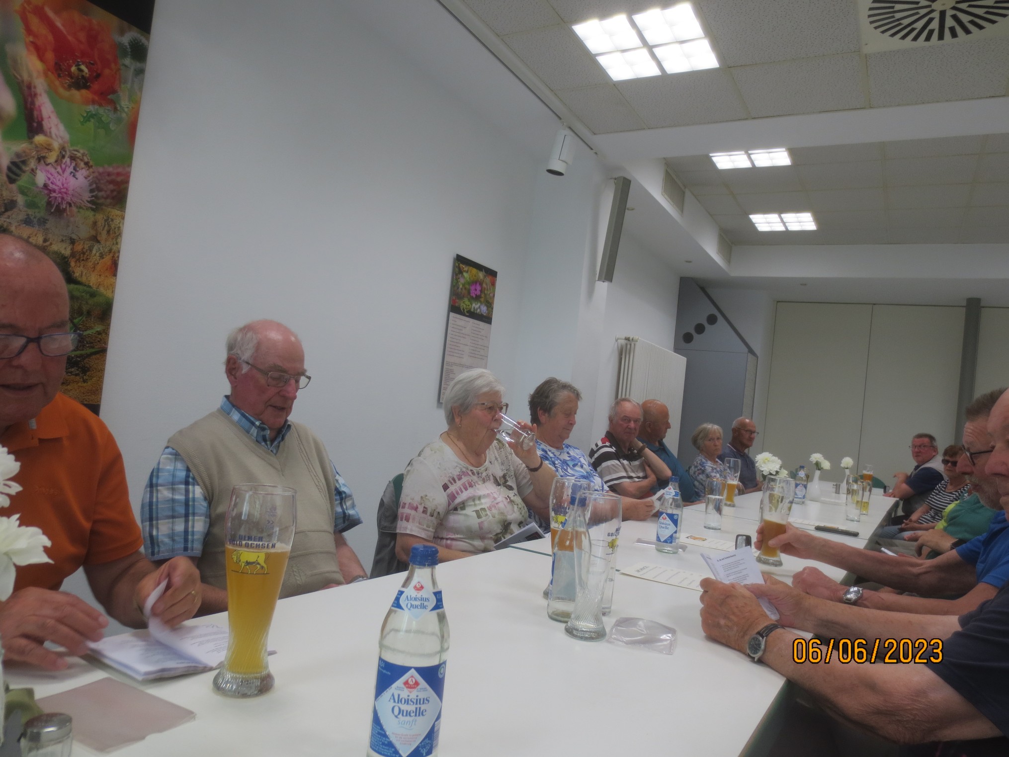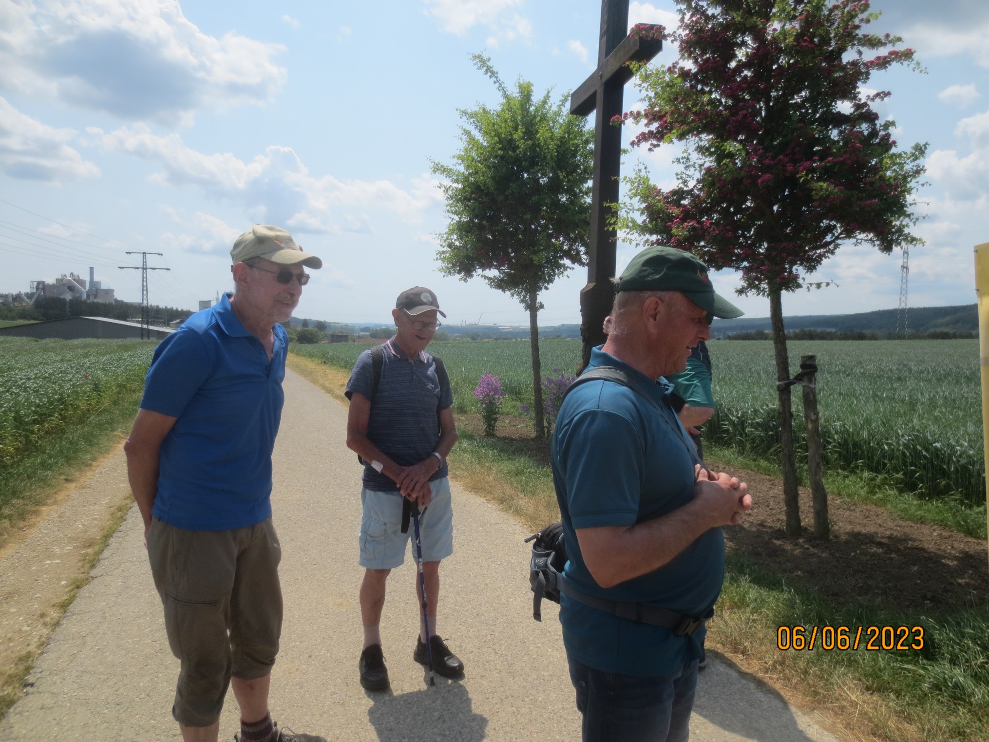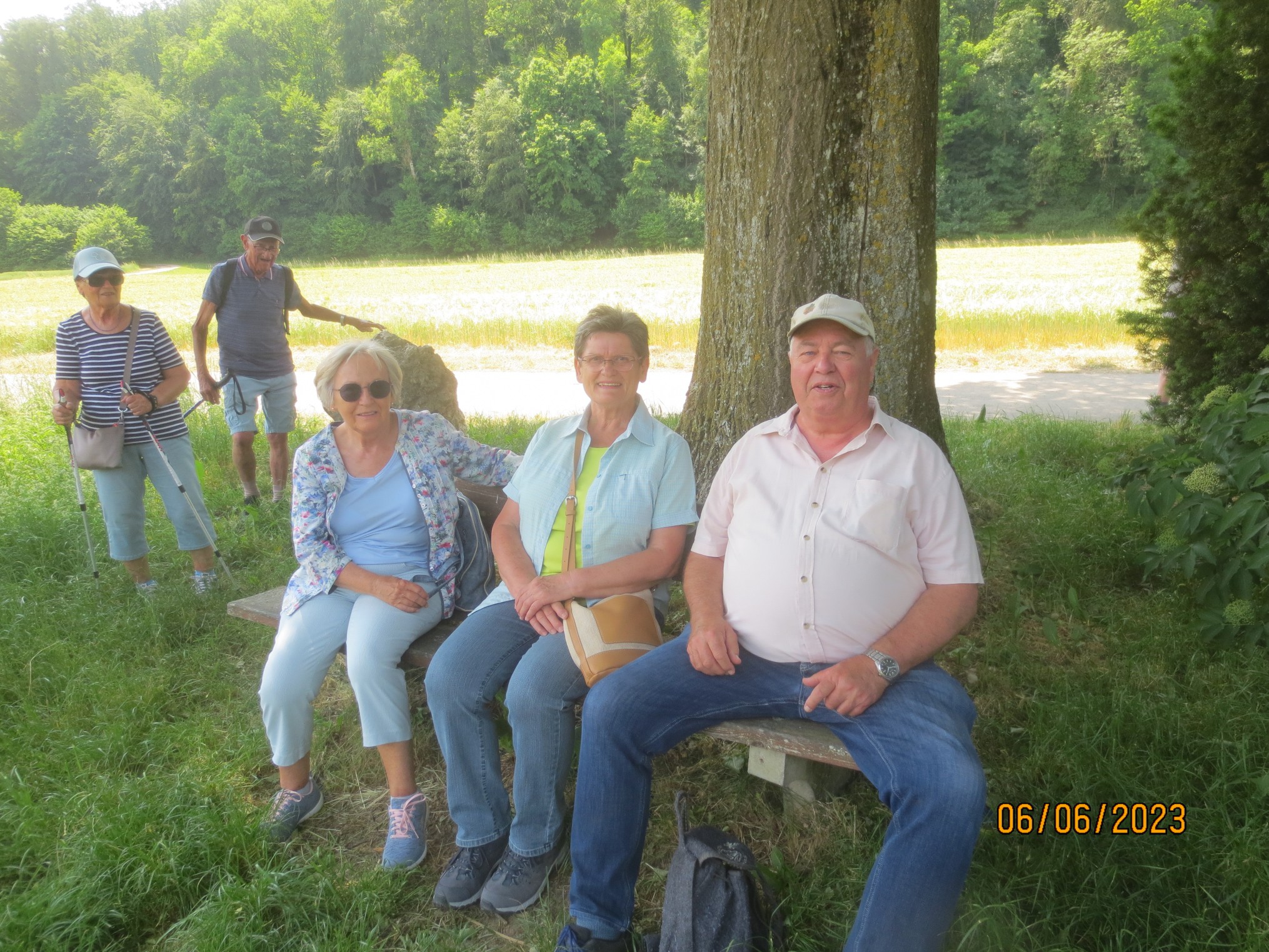 Sternwanderung der Albverein Senioren, mit 8 Frauen und 14 Männern, nach Schelklingen, mit Einkehr in der Kantine des Heidelberger Zement. In mehreren Gruppen wanderten wir bei heißem Wetter in die Kantine. Zur Abkühlung gab es kühle Getränke und ein super Vesper. Ein reichhaltiges Angebot von Schnitzel über Bratwurst und Wurstsalat erwartete uns. Auch die Rückfahrt mit dem Zug klappte gut.