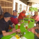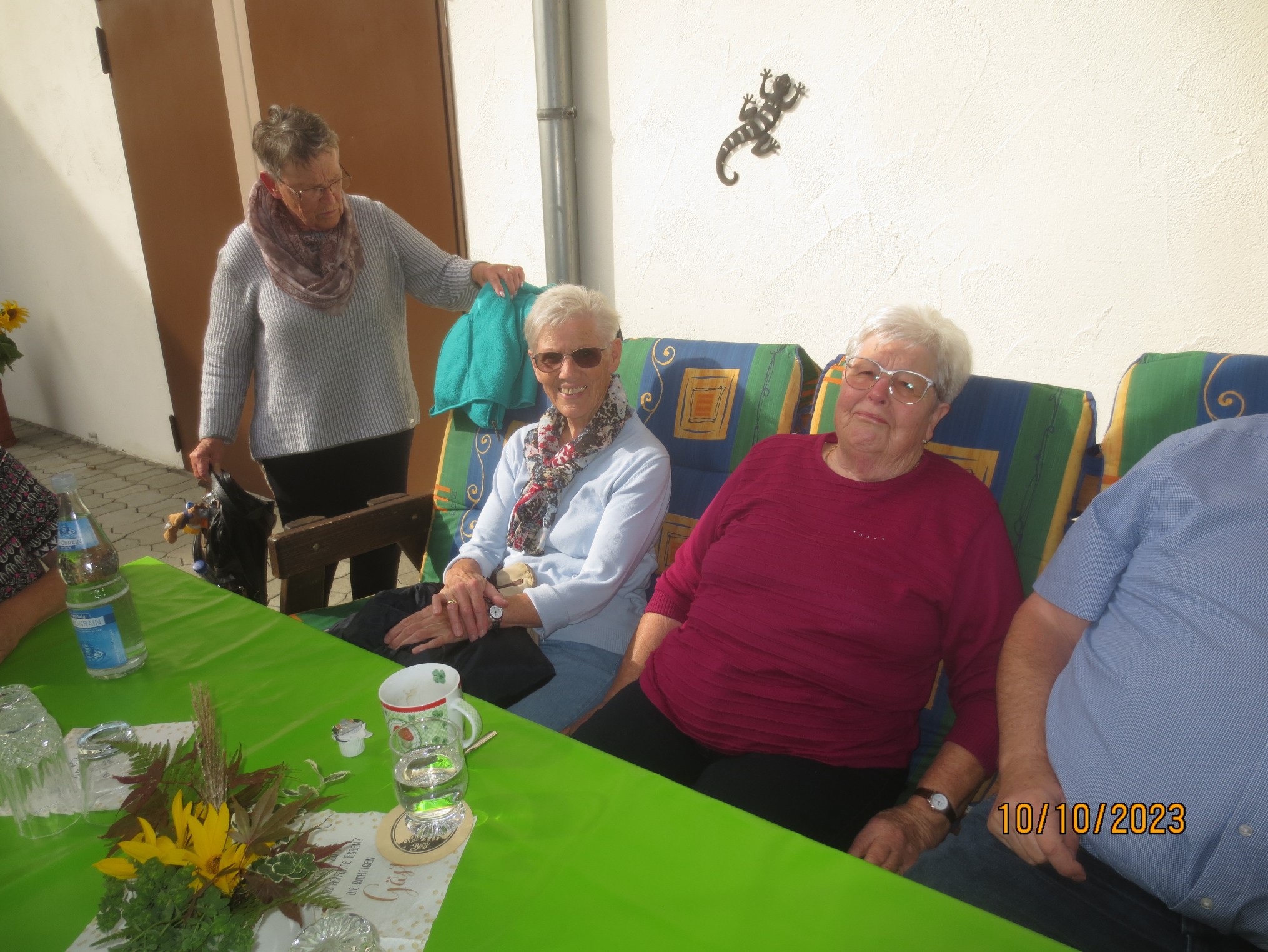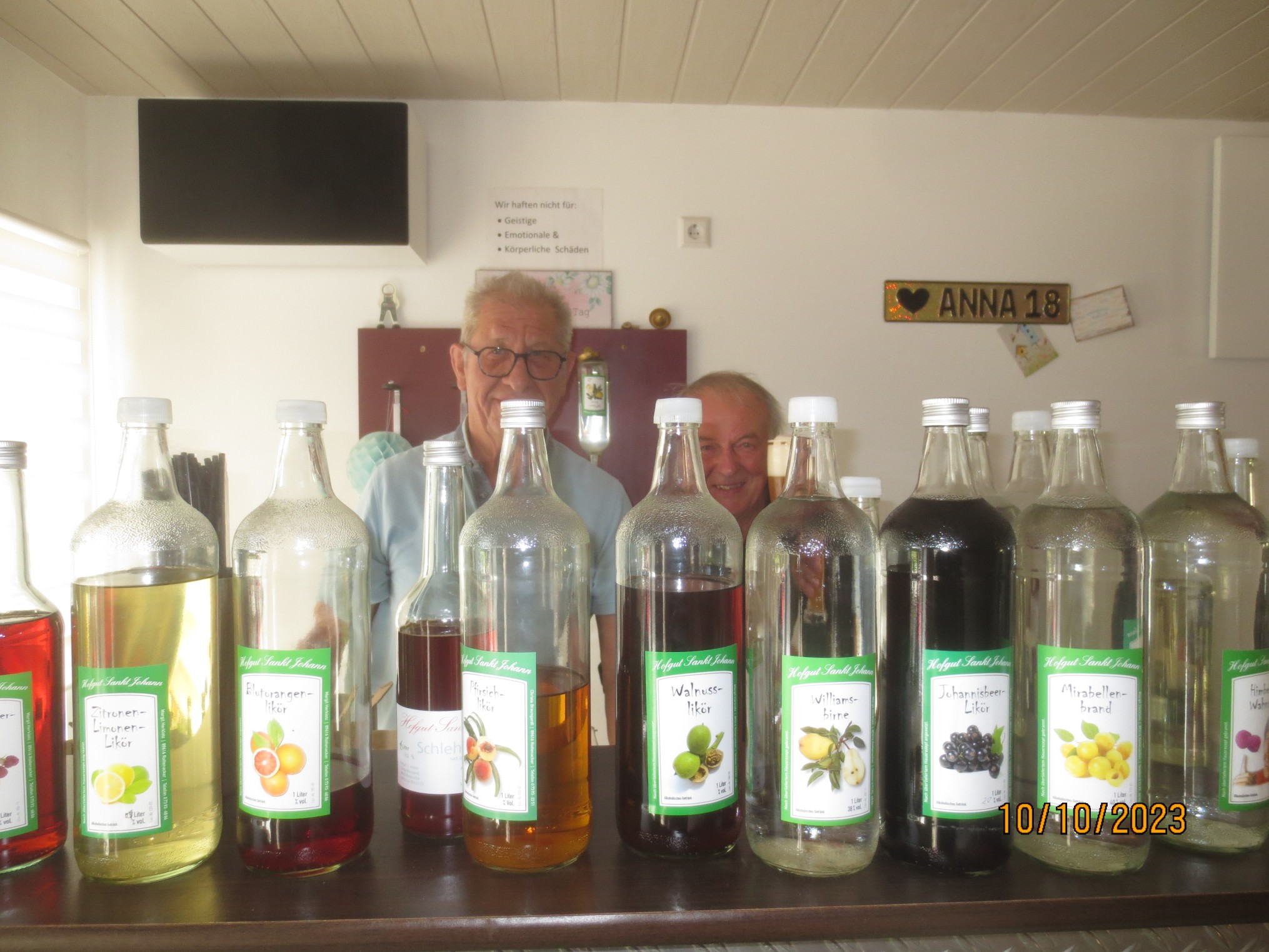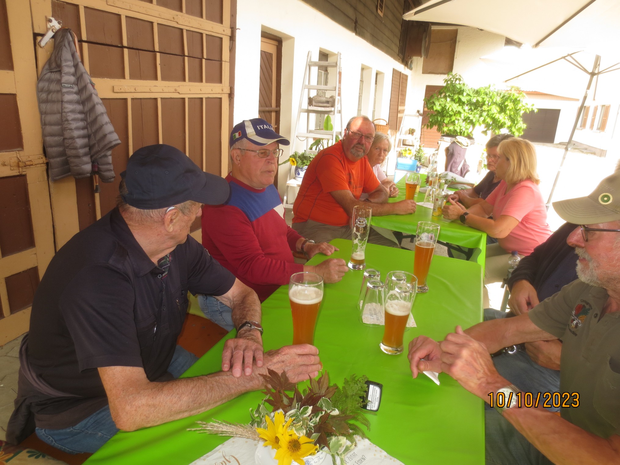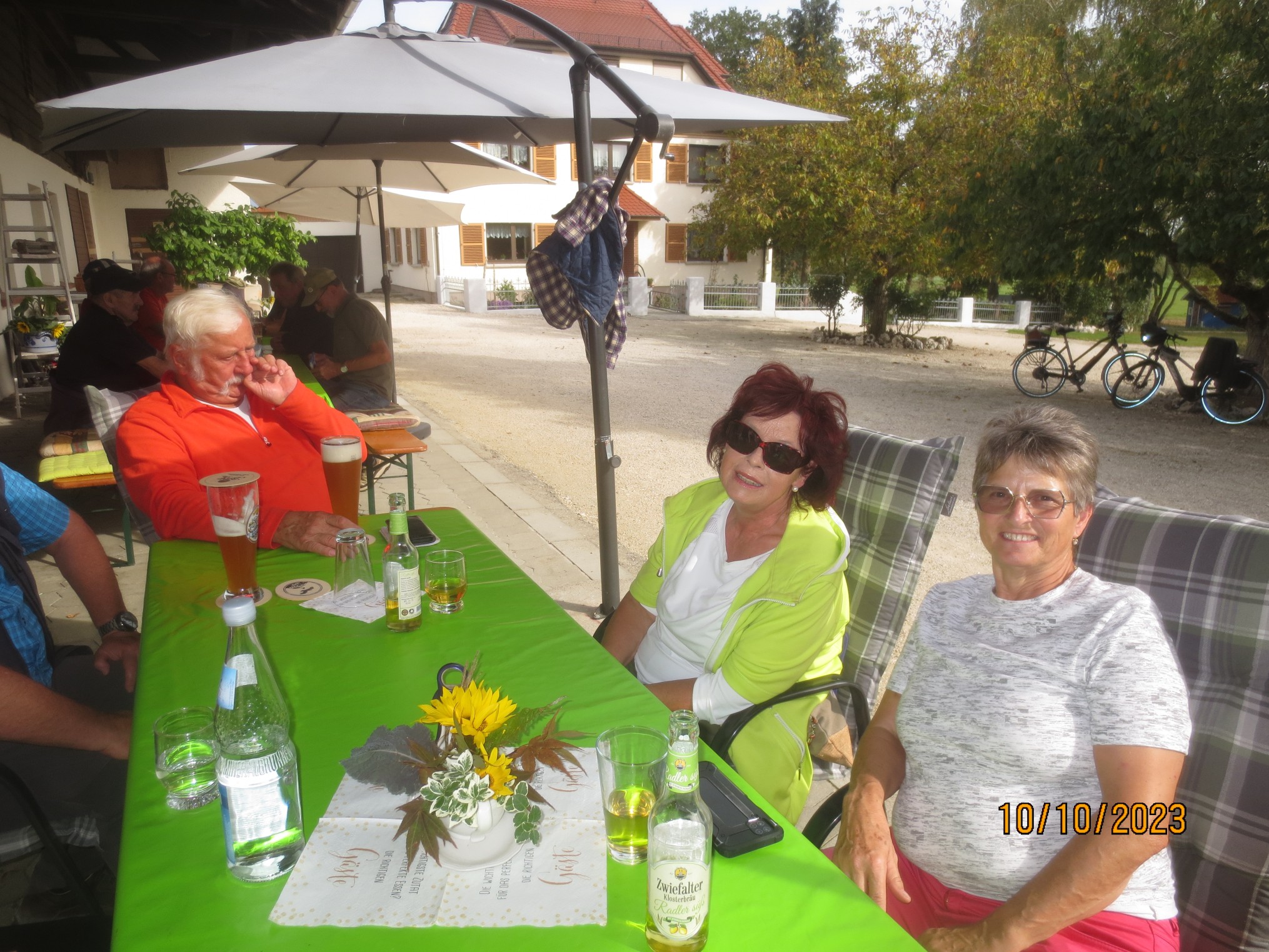 Dienstag 10.10.2023 Wanderung von Rottenacker in das beliebte Hofgut St. Johann zur Einkehr bzw. zu einem Grillnachmittag der Senioren und Albvereinler. Super war das Wanderwetter das ca. 15 Personen mit dem Zug von Allmendingen nach Rottenacker in Anspruch nahmen. Von Rottenacker aus ging es über Stock und Stein zum Teil anspruchsvoll, das Wolfgang Nörpel vorschlug, zum Hofgut. Die Sitz und Grillstation wurde von Dieter Edelmann, Harder Erwin sowie Karlheinz Juchems super vorbereitet. 12 Frauen und 14 Männer freuten sich auf leckeres Fleisch, Wurst und Salate. Eine Auswahl an Getränken war natürlich auch vorhanden. Den Grillmeister übernahm Dieter Edelmann der auch das Fleisch spendete. Die Getränke wurden von Karlheinz Kley übernommen der eine großzügige Spende an den Verein machte. Erwin und der Vorstand sorgten für den flüssigen Nachschub. Die Schnapsprobe wurde von der Chefin verteilt und reichlich angeboten. Leider zu früh mussten wir wieder den Rückweg nach Rottenacker antreten um mit dem Zug nach Allmendingen zu kommen.