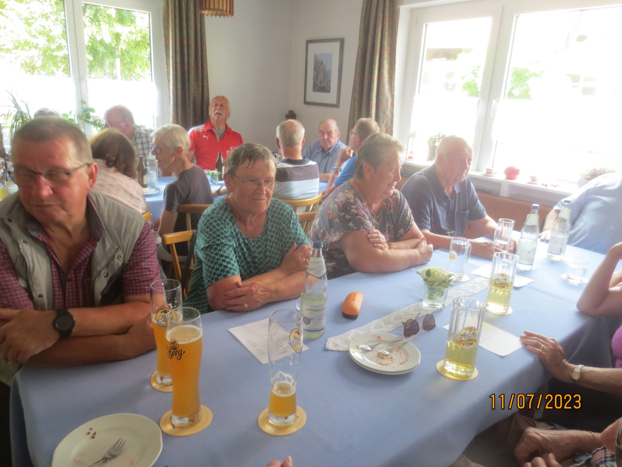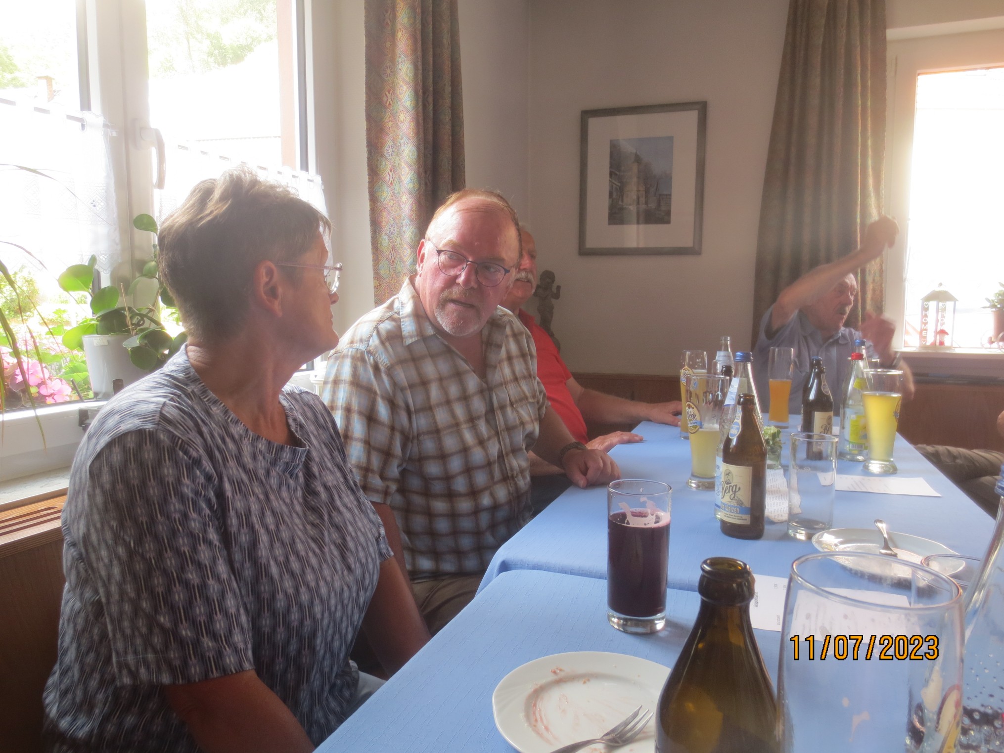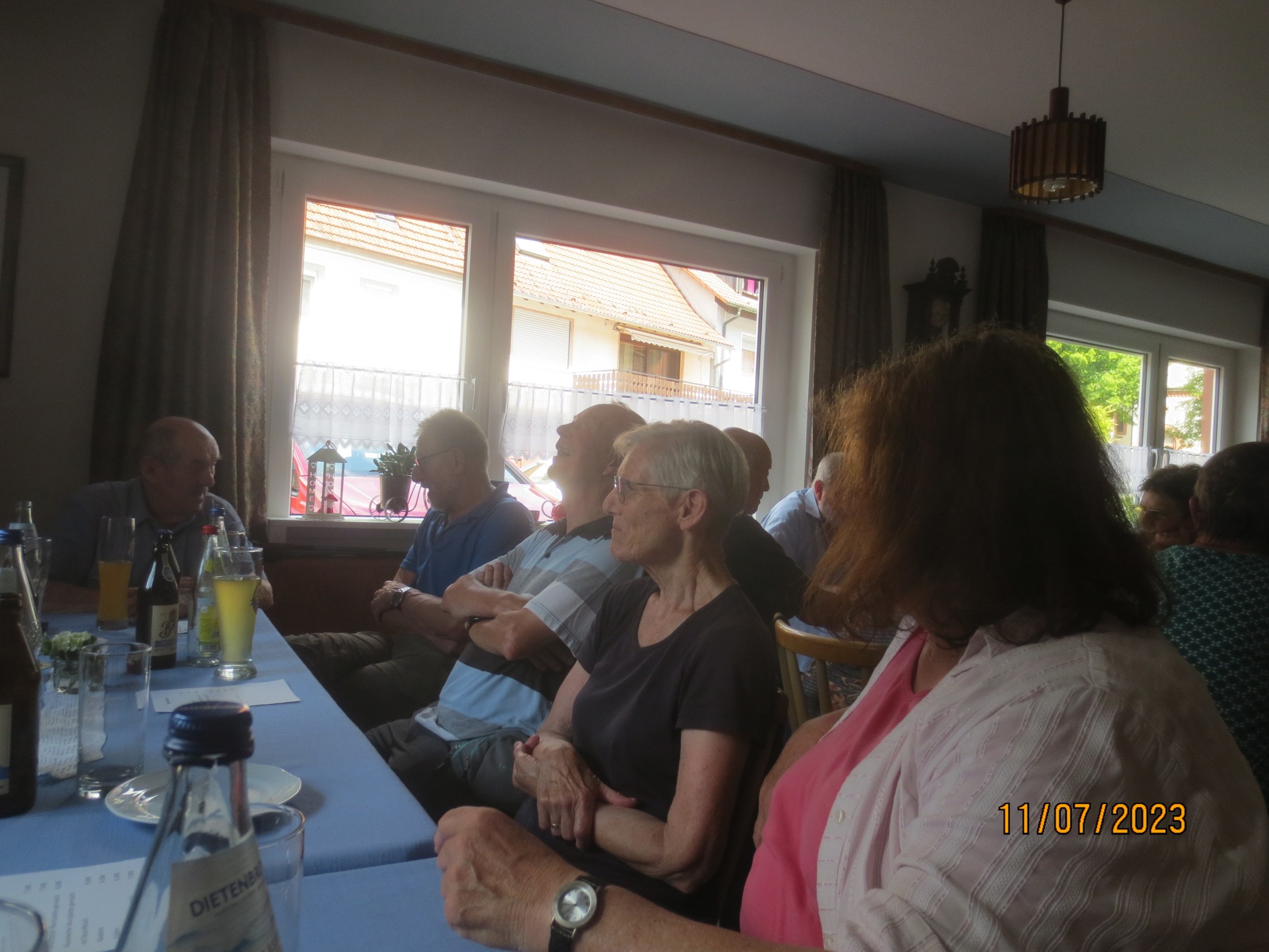 Wanderung am heißesten Tag des Jahres von Hütten bzw. Sondernach nach Gundershofen mit 7 Frauen und 12 Männern. Viel abverlangt wurde den Wanderern bei diesen Temperaturen, weil die Wanderstrecke unter viel Sonnenschein gestanden hat. Auch in der Gaststube Hirsch mußte der Wirt Hermann Späth sehr viel Getränke austeilen und kam zeitweise ins Schwitzen. Einkehr und Vesper war super, das auch die drei Radler bestätigten. Fahrt mit Albbahn und Bus hat gut geklappt.