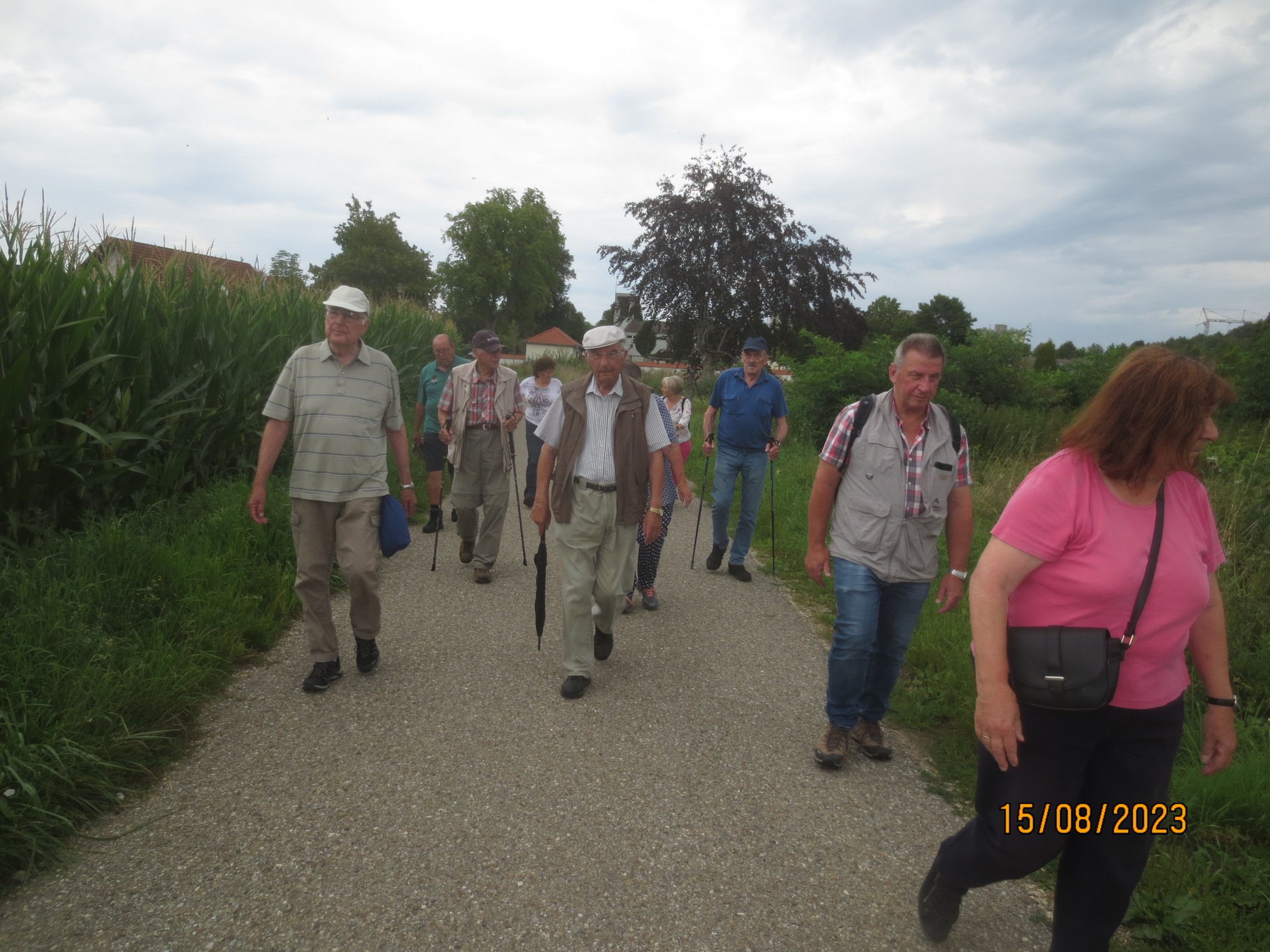 Allmendingen Dienstag 15.08.2023 Wanderung in Unserem Schönen Allmendingen (USA) mit 3 Gruppen, darunter 12 Frauen und 19 Männern. Die Weitwanderer liefen über Wassergasse zum Weißen Kreuz und über Lixe zur Einkehr im super vorbereiteten Minigolfplatz zur Einkehr. Aber auch die Gruppe 2 mit 12 Wanderern lief am Bahnhof und Friedhof vorbei an der Fa. Denkinger entlang und über Recyclinghof zur Einkehr. Das schöne Wetter hatte Willi Knab und seine Frau Uschi bestellt, sowie Kaffee, Kuchen, kühle Getränke, mit Debreziner und Saitenwürste aufgetischt . Ein Schnäpsle gab es obendrein. Ein Minigolfspiel wurde natürlich auch auf dem tollen Platz abgehalten. Ein super Wandertag