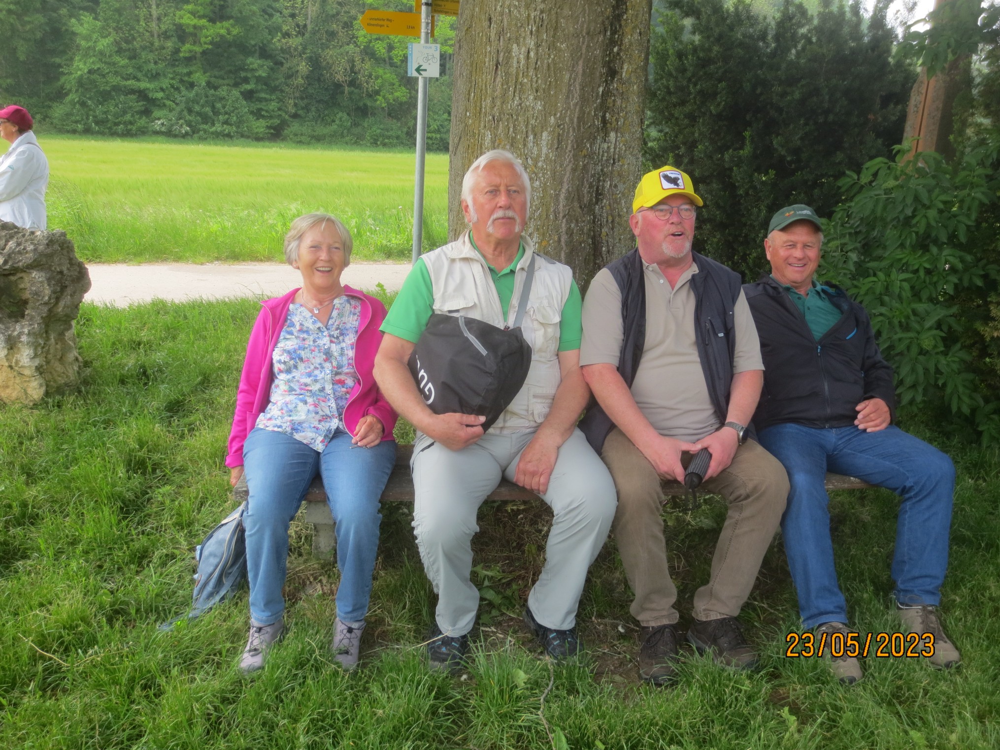 Gut gelaunt und bei super Wetter wanderten 11 Frauen und 17 Männer am Schmiechener See vorbei, nach Schelklingen. Einige machten noch einen Schlenker über Urspring. Die Einkehr war wieder im Stellwerk beim Bahnhof, mit leckerem Vesper und fröhlicher Stimmung.