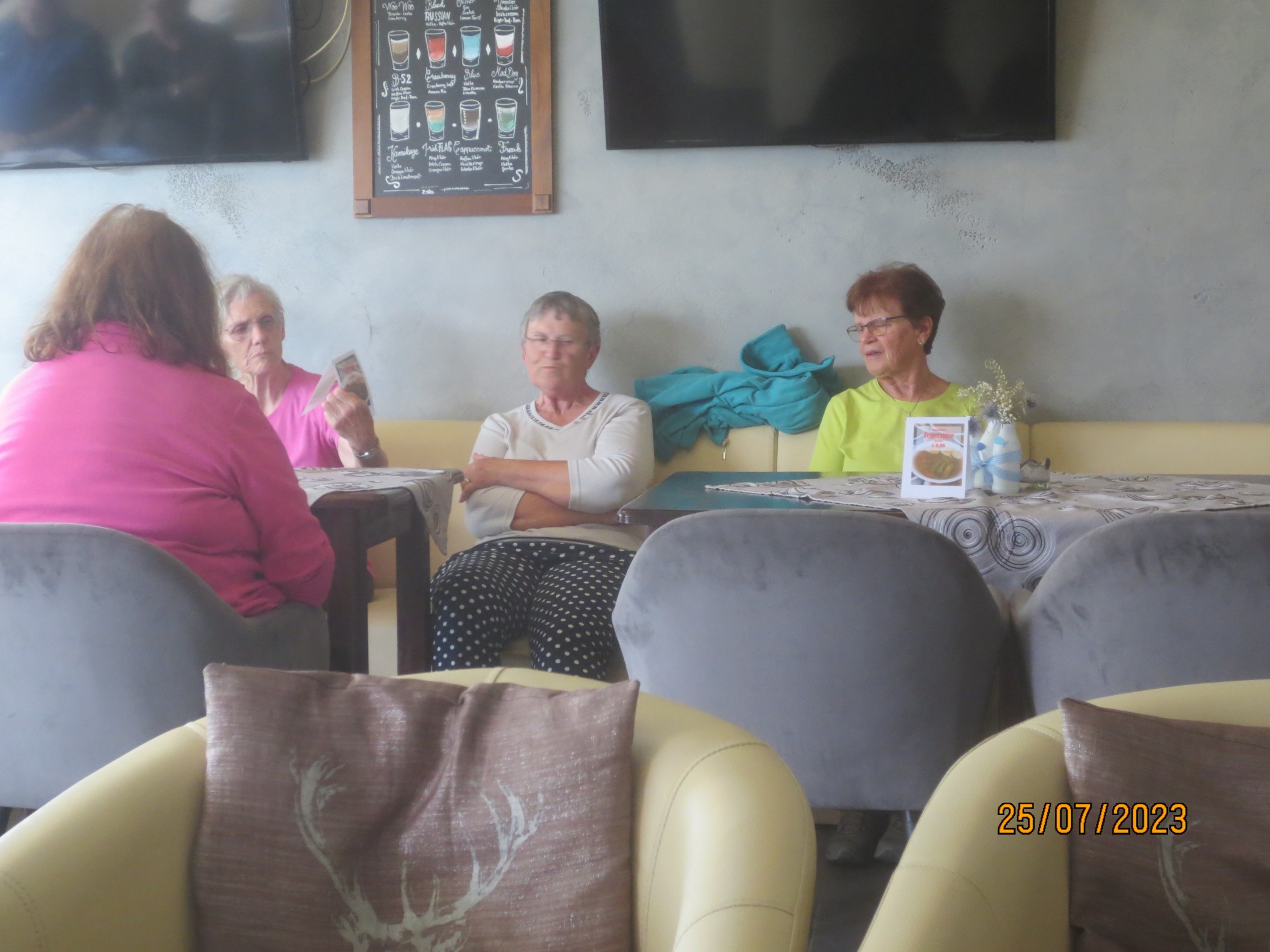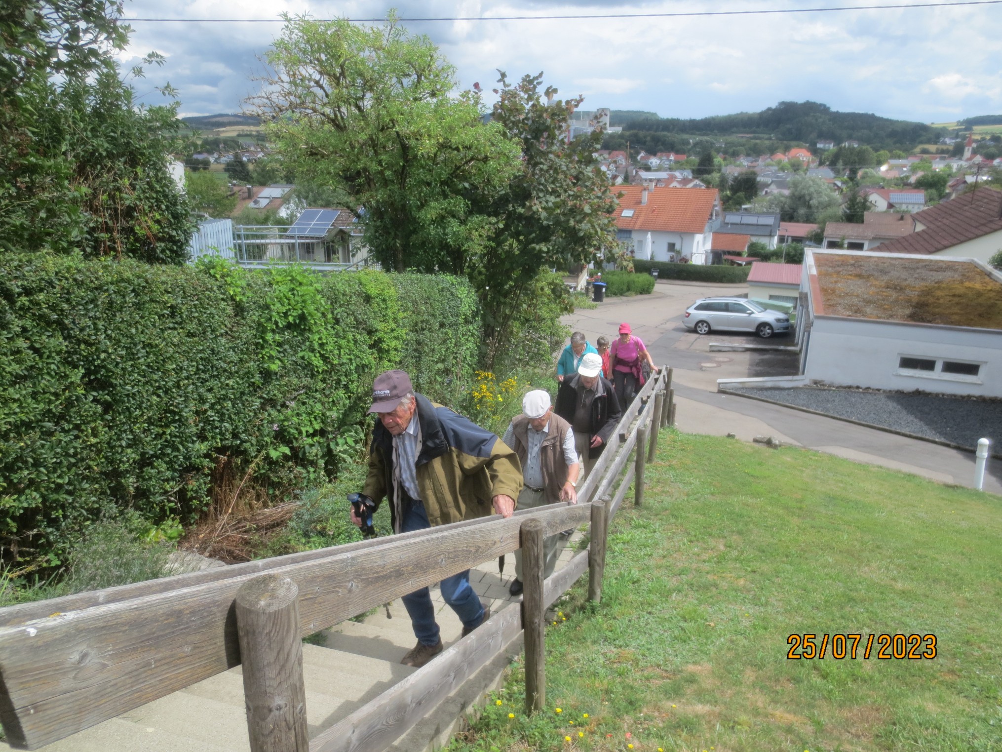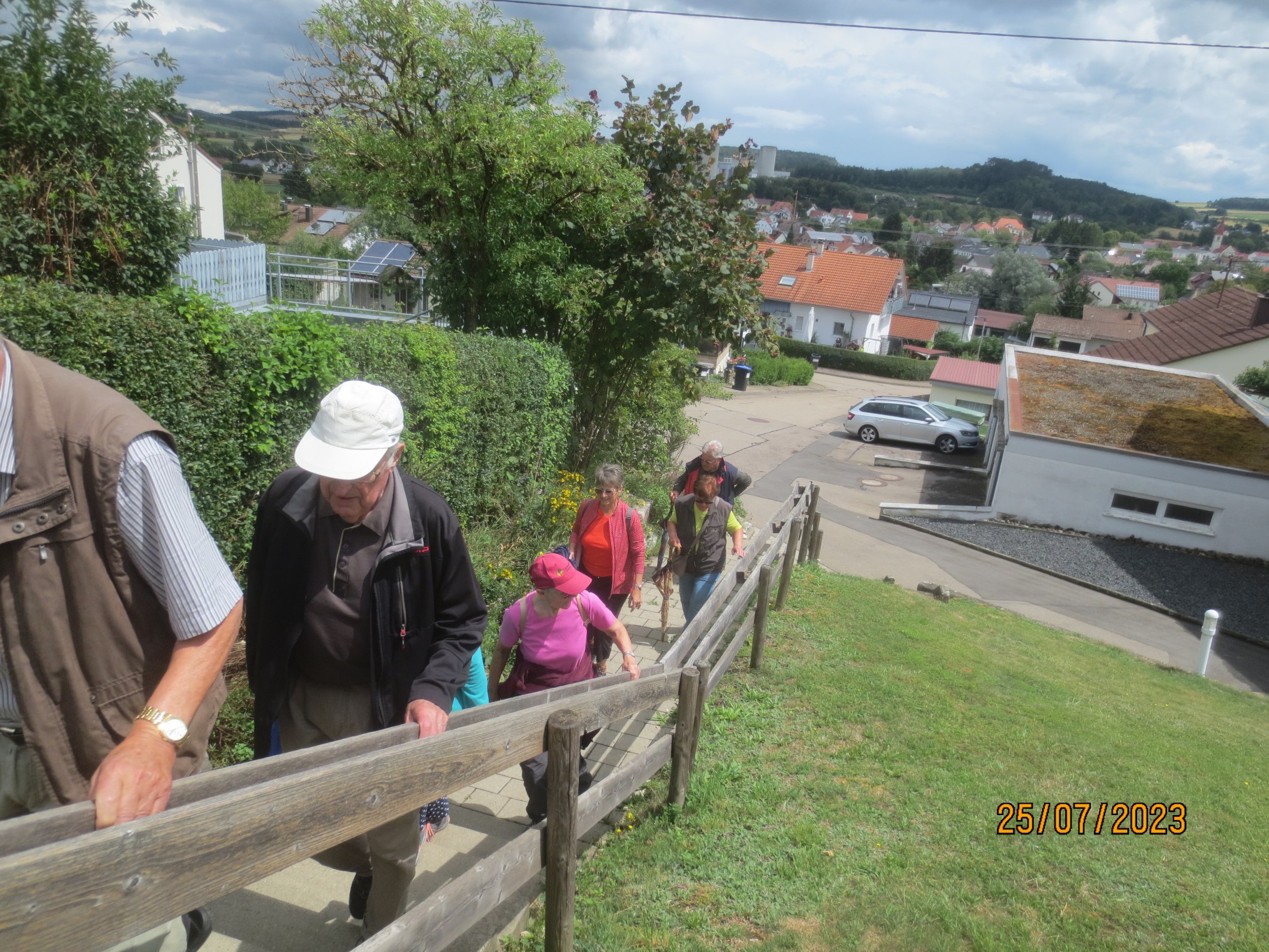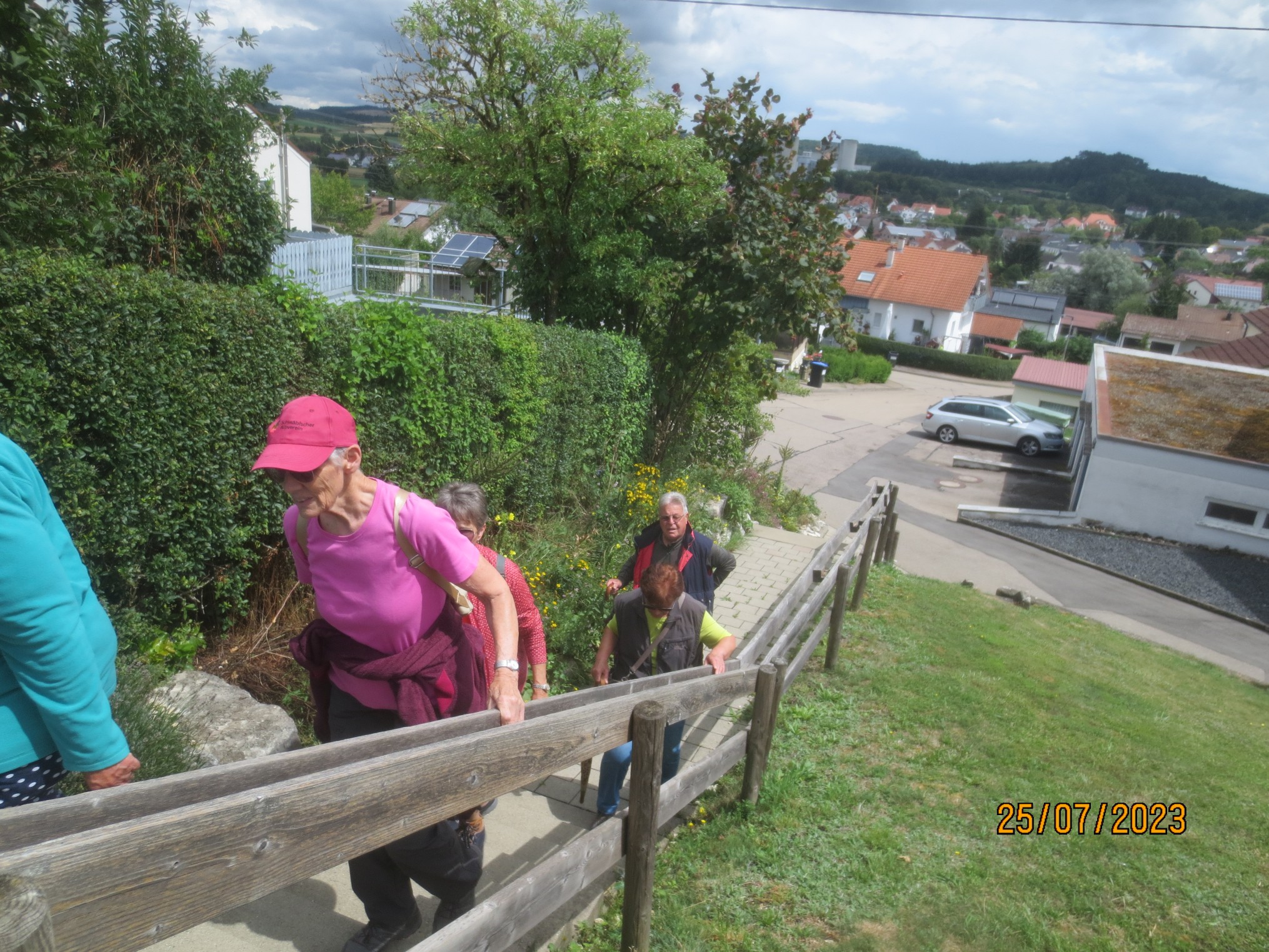 Wanderung in unserem schönen Allmendingen mit 7 Frauen und 11 Männern bei kühlem und regnerischem Wetter, aber alle gut gelaunt. Eine kleine in 3 Gruppen starke Wanderschar erkundete, mit kleinen Regenschauern versüßt, Allmendingen. Einkehr war bei dem frohgelaunten Wirt Robby in seinem Bistro. Getränke und Speisen wurden super und bestens gereicht.