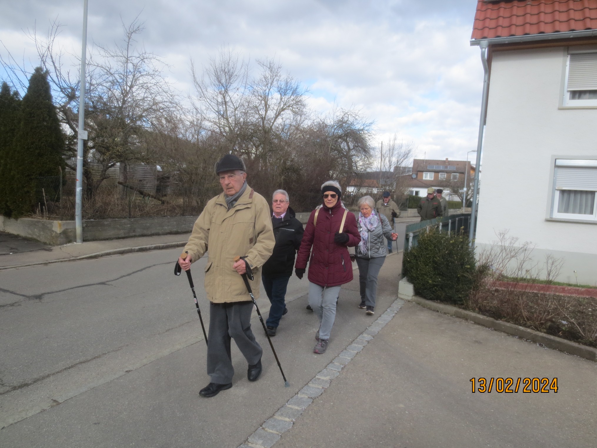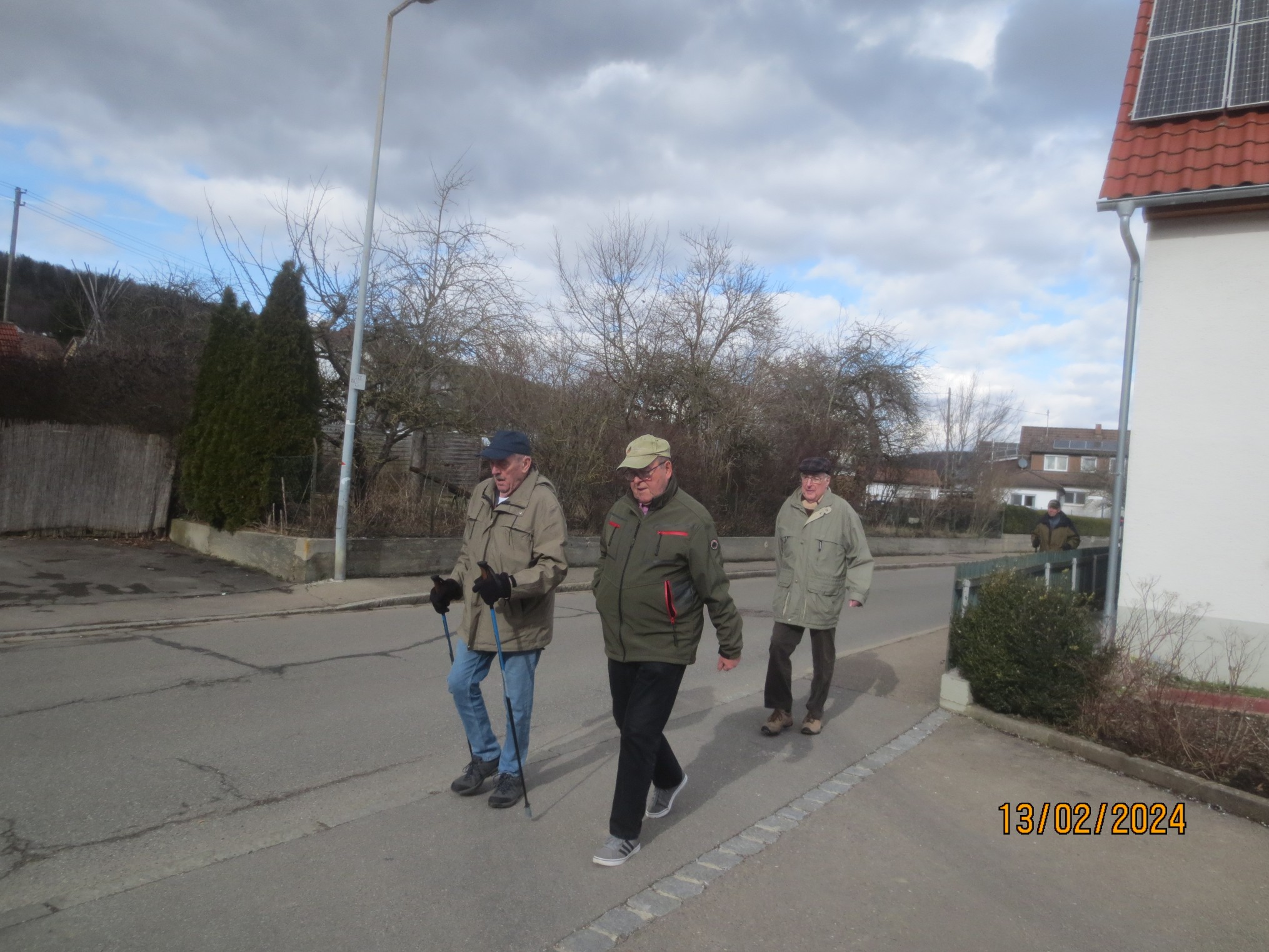 Wanderung in Allmendingen zur Einkehr im Gasthaus Kreuz. 11 Frauen und 13 Männer trafen sich zur traditionellen Kreuzwegwanderung am Fasnetsdienstag zur Einkehr bei Helga im Gasthaus Kreuz. Walter Habrik erfreute die Gäste mit lustigen Anekdoten zur Fasnet und Reiner mit Lieder zur Fasnetszeit.